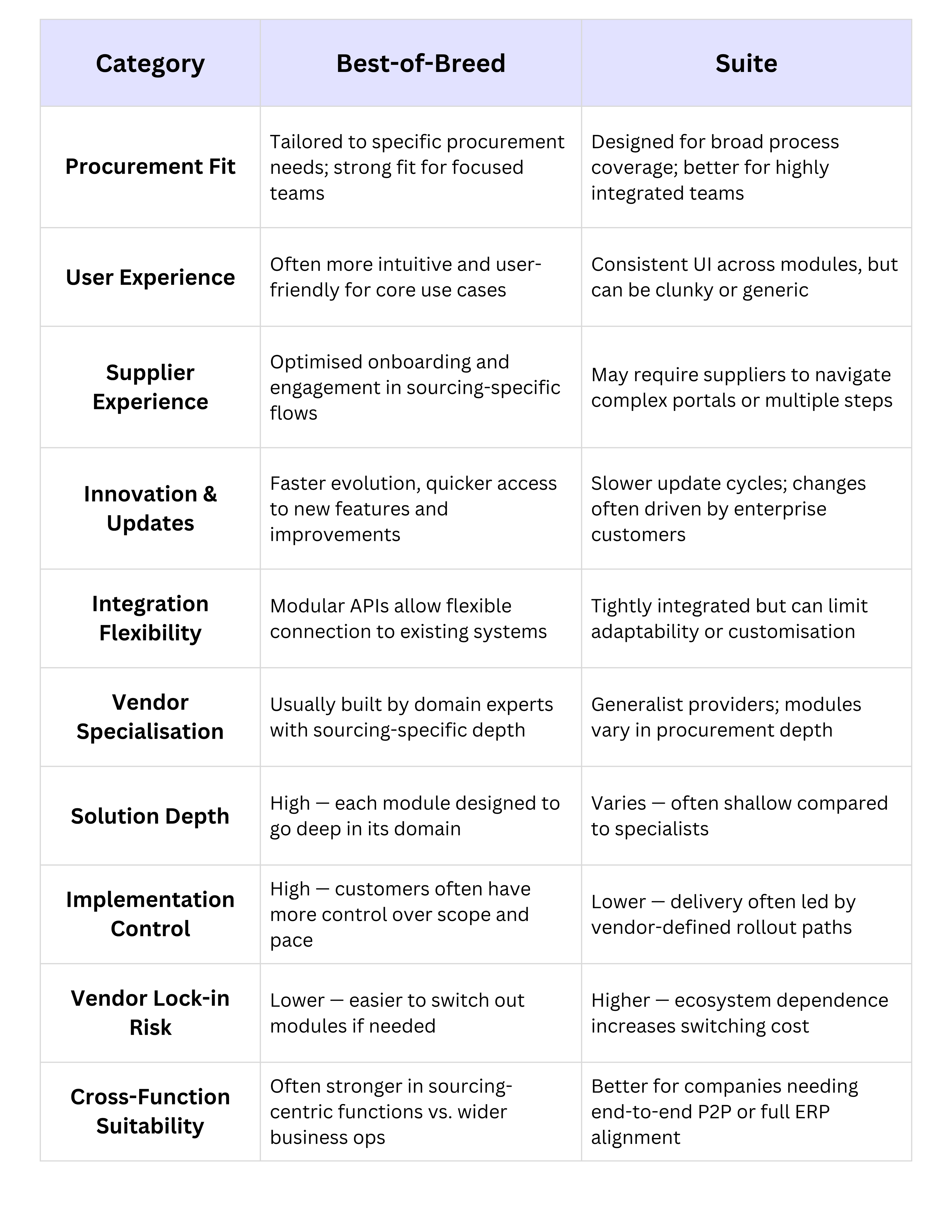 There’s no one-size-fits-all approach. Whether you choose Best-of-Breed or Suite, All-in-One-Go or Step-by-Step, the right path depends on your organisation’s maturity, resources, and appetite for change. What matters most is aligning technology choices with the business problems your stakeholders care about, so that your investment in eSourcing and Source-to-Contract technology delivers lasting impact.